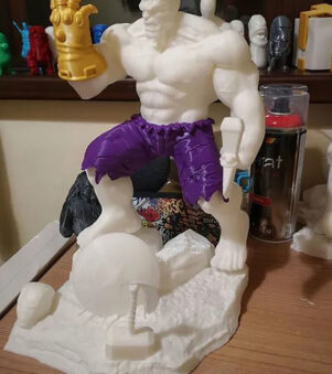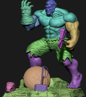 The Hulk Guantelete, a spectacular 3D-printed marvel, channels immense power and grandeur. Its intricate detailing and imposing design evoke the essence of strength and dominance, symbolizing a fusion of might and artistry.