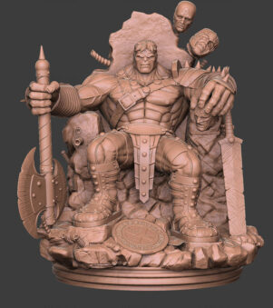 Hulk on Throne, a commanding 3D-printed representation, portrays the iconic hero seated regally. Its intricate design exudes dominance and power, capturing Hulk’s might while adding regal flair to this formidable character.