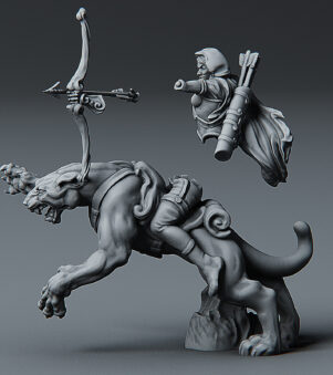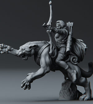 The 3D printed Panther Scout features a sleek and agile panther, showcasing its natural grace and predatory prowess. With intricately designed armor and a dynamic pose, this model is perfect for tabletop gaming or as a captivating display piece.