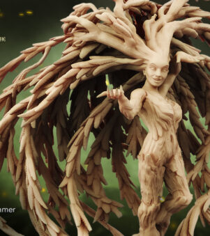 The 3D printed Sulsillys Willow Dryad model encapsulates the serene beauty of woodland spirits with delicate features and intricate vine-like details. Radiating an aura of natural grace, she embodies the essence of forest enchantment.