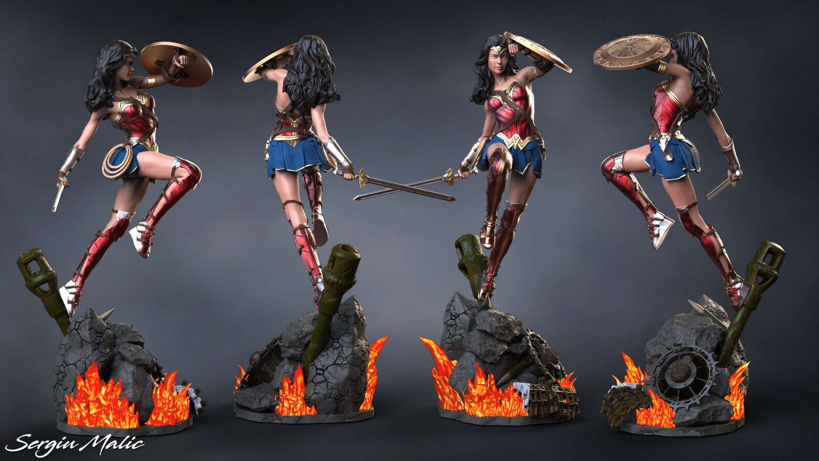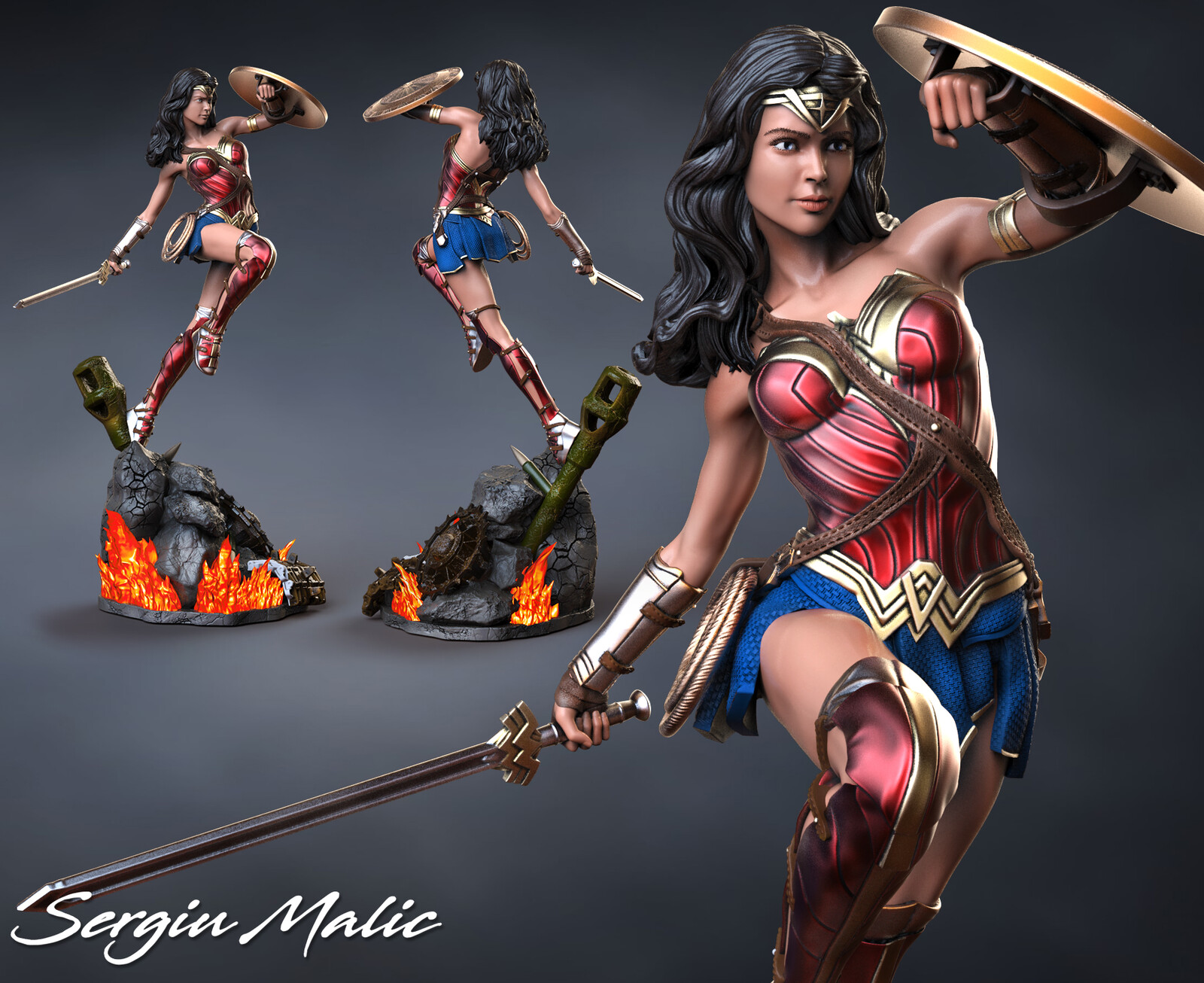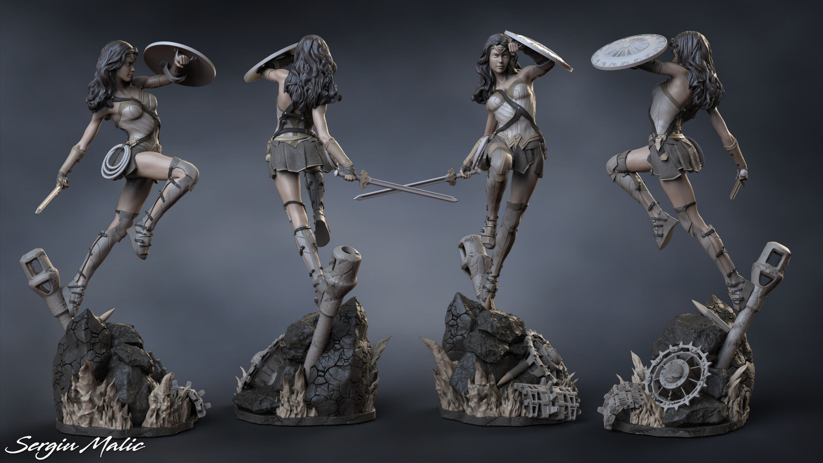 The 3D printed Wonder Woman is a stunning rendition of the iconic superhero. With intricate detailing, it captures her strength, beauty, and courage, making it a remarkable collectible for fans and enthusiasts.